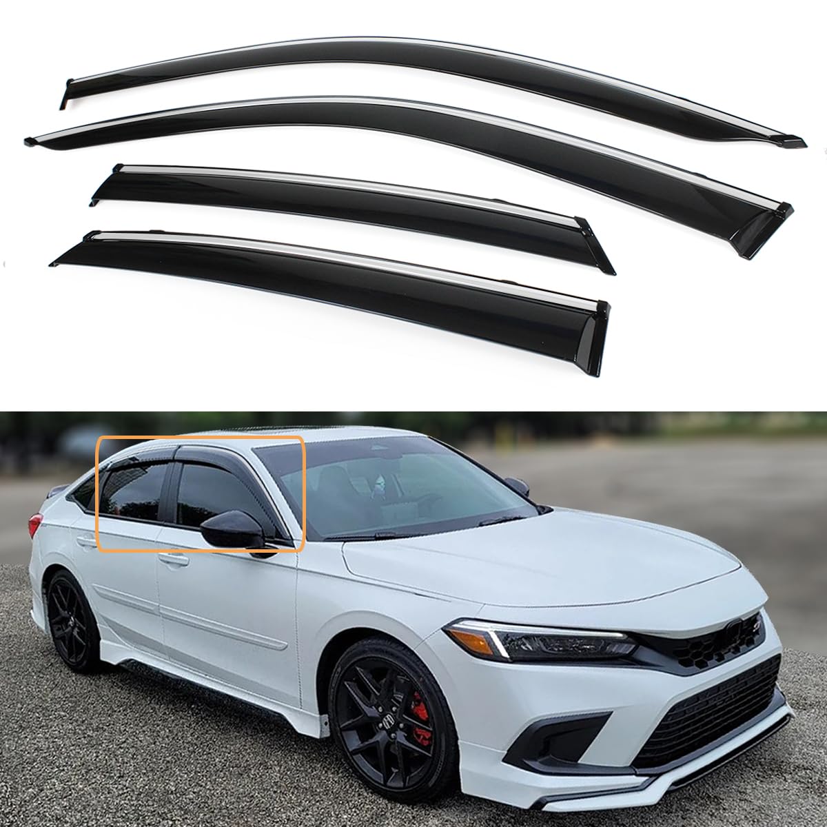 Manufactured using durable, UV-resistant acrylic material, the visors allow you to keep windows slightly open during rain—reducing fog buildup and improving ventilation. Their clean, slim, aerodynamic profile enhances the Civic’s premium and elegant design.
