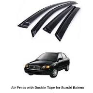 Upgrade your Suzuki Baleno (1998–2005) with these premium door visors designed to improve both comfort and exterior styling. These visors let you slightly open your windows during rain to enjoy fresh airflow without water entering the cabin. Their aerodynamic design helps reduce wind noise while driving, making your ride quieter and more comfortable. Made from strong ABS/acrylic material, they are UV-resistant, durable, and built to withstand all weather conditions. A perfect accessory to enhance the look and practicality of your Suzuki Baleno.